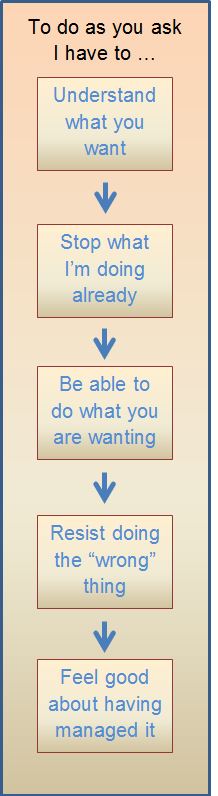 - usually we want children to do something that is less attractive than what they had in mind. For example, putting your coat on is much more boring than playing with a toy.